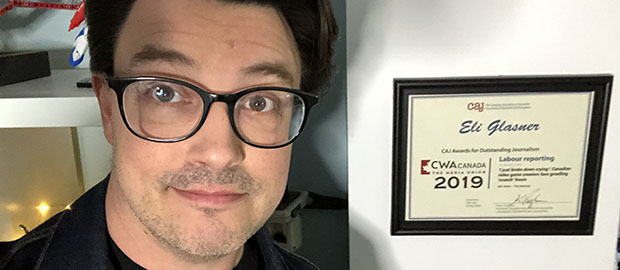Eli Glasner, an entertainment reporter, film critic and screentime columnist for CBC News, has claimed the CWA Canada / CAJ Award for Labour Reporting.