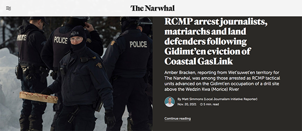 As you are aware, Amber Bracken and Michael Toledano were illegally arrested on Nov. 19 while reporting on the construction of a contentious natural gas pipeline in Wet’suwet’en territory in northern British Columbia. They were within the court injunction area — which court decision after court decision has affirmed journalists’ right to access — when the RCMP took them into custody and confiscated their belongings and equipment.