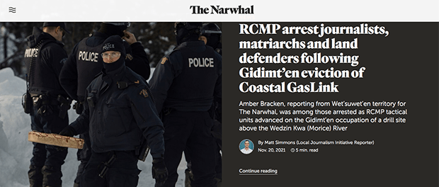 It is crucial to acknowledge the context in which these detentions, of everyone from land defenders to media workers, are taking place. As Canada and its democratic and civic institutions contend with and promise to redress their roles in the oppression and dispossession of Indigenous people on their land, journalists have a unique and express duty to bear witness to and comprehensively cover news events of consequence. Federal agencies should see it is in everyone’s collective democratic interest to not unlawfully impede residents’ access to information of great public concern.