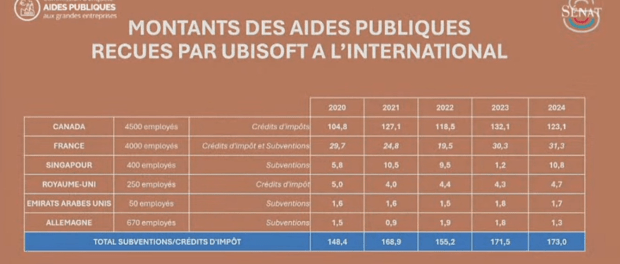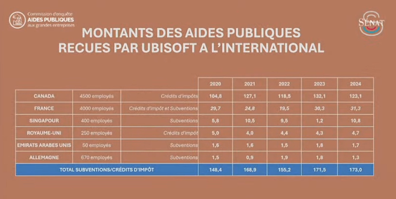 French Senate documents reveal that the video game giant received more subsidies from Canada (federal and provincial governments) than from all other countries where it operates combined (see attached chart in Euros).