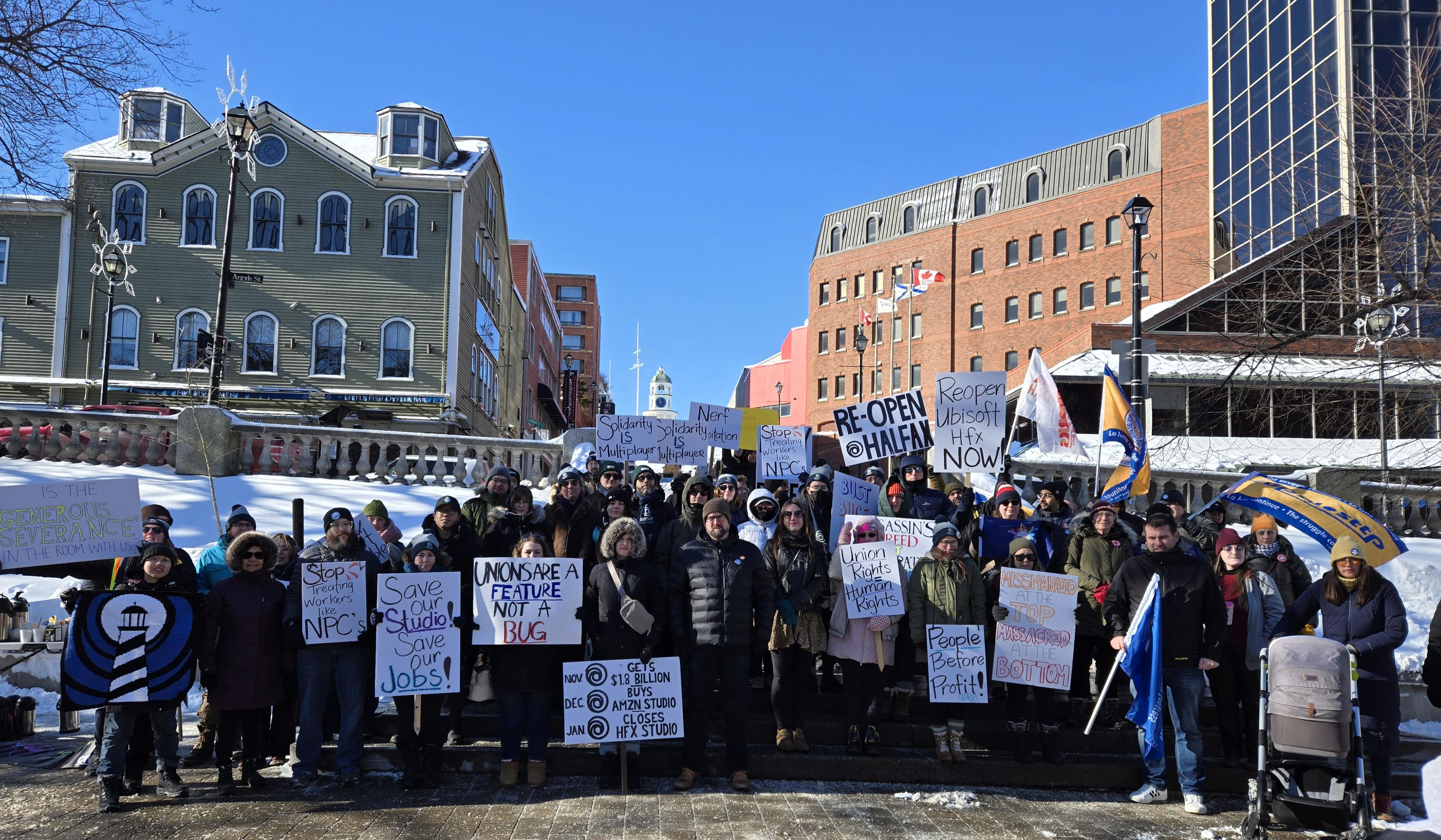 Workers, community members, union activists, and the province’s NDP labour critic gathered at the Grand Parade in Halifax to make sure Ubisoft gets the message that it can’t kill 71 good local jobs without consequence.
